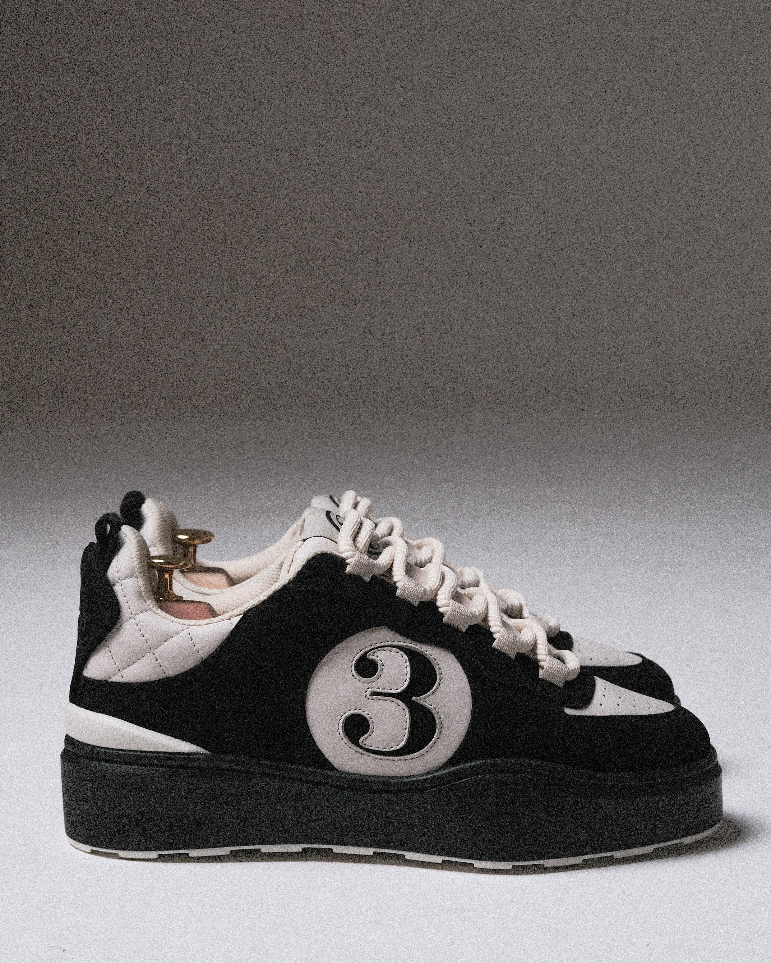 Anthracite Suede elevates the classic black sneaker with layers of rich suede, quilted leather and bold ivory accents.